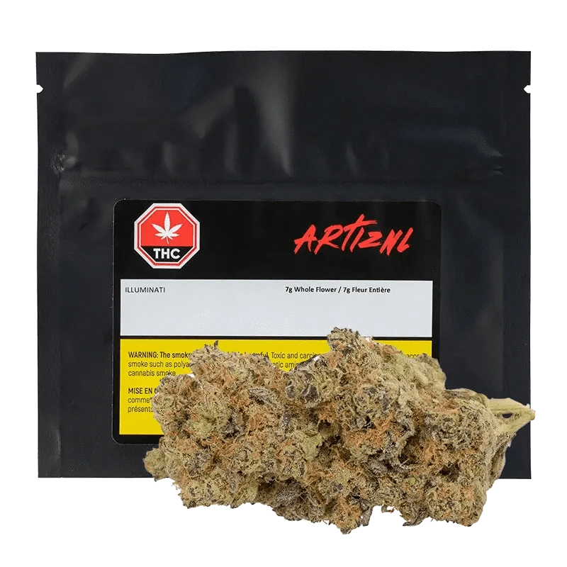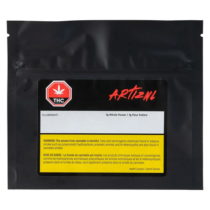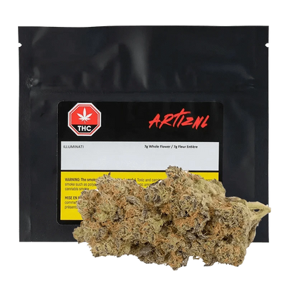 This bud is shrouded in mystery. Cultivated meticulously in the legacy market by us for more than six years as a Slurricane, we've maximized the look and taste of our Illuminati strain. Its exceptional lineage of Dos-si-dos x Purple Punch shines brightly in this cultivar, and through an extensive in-house phenohunt, we've ensured its unparalleled uniqueness. Get ready to immerse yourself in this perfectly curated hybrid flower. The dense buds are almost blue in colour, adorned with dense trichomes, vibrant orange hairs and delicate lavender sugar leaves. When the bag is opened, the aroma of vanilla cookies, burnt rubber and chlorine captivates your senses. On the palate, a gassy introduction transforms into a symphony of sweet undertones, culminating in a smooth finish. Illuminati heralds the extraordinary beginning of what the Artiznl team has to offer.