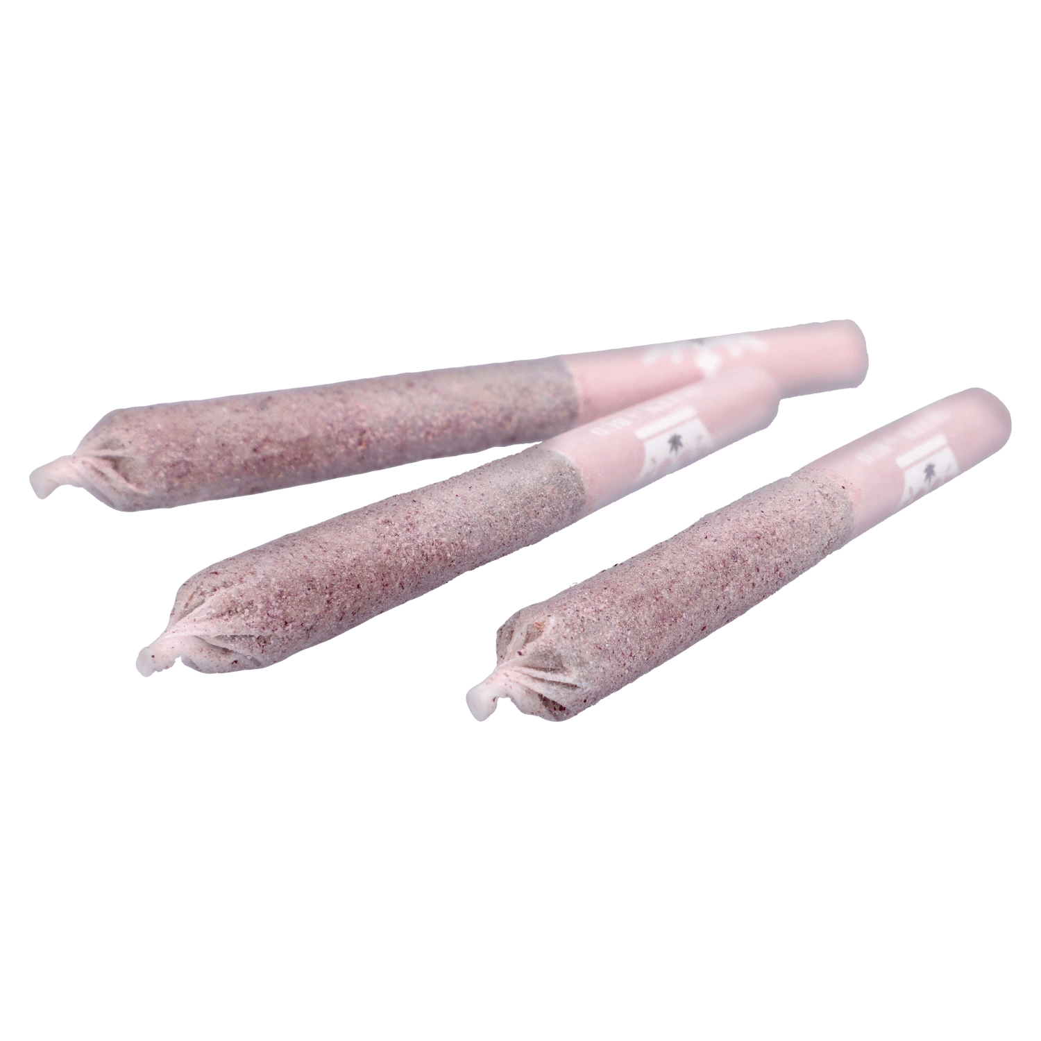 Our new Rose Quartz Strawberry Lemonade pre-rolls are where the essence of universal love meets the perfect high. Rose Quartz, renowned for its ability to enhance comfort in social settings, uplift the spirit, and foster deep connections, is now embodied in our premium high-THC cultivar. Infused with 100% plant-derived botanical terpenes, this exquisite pre-roll delivers an enchanting aroma of sweet Strawberry Basil Lemonade. Inhale love, exhale doubt—it's time to fall in love with life all over again.