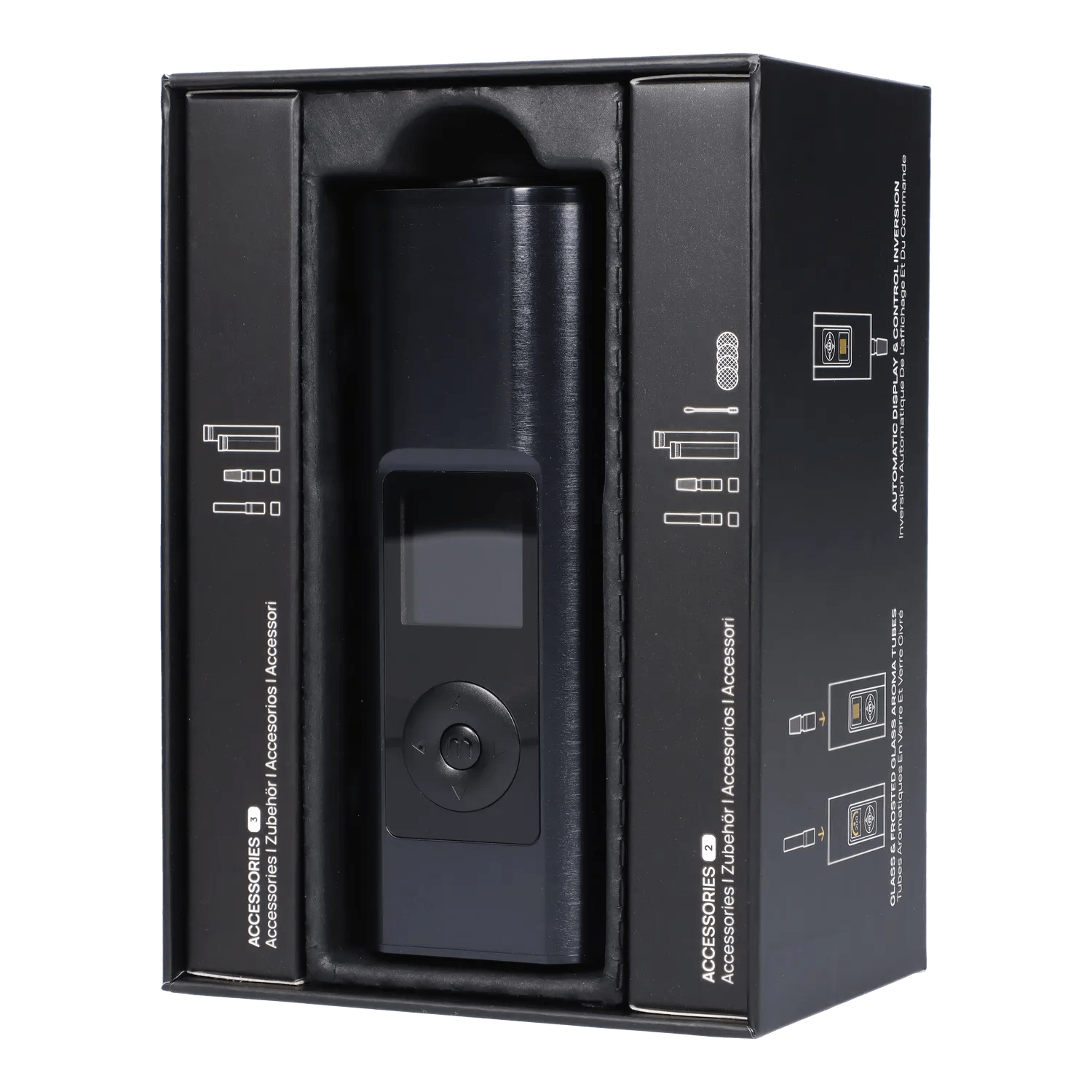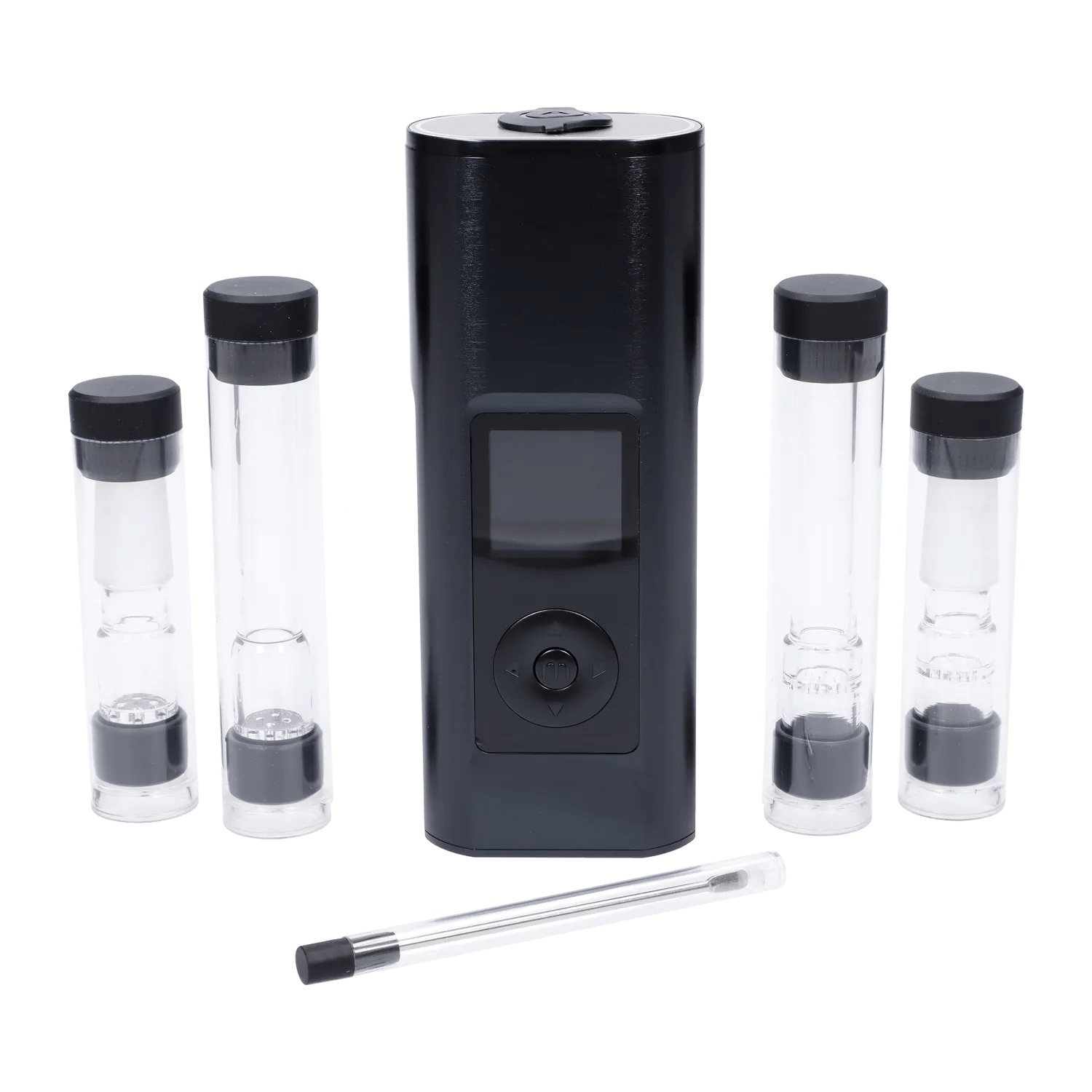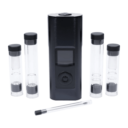 The Solo III is a portable dry herb vape from Arizer. The big, bright screen makes temperature changes and customizing settings a breeze! Using groundbreaking technology, the Solo III can heat up in as little as 5-15 seconds and makes sure everything heats evenly with a 80% convection/20% conduction ratio. Their new XL tubes will give you more room to pack and better airflow. Feel like you're neglecting all your beautiful bongs? Use the frosted glass aroma tube that connects with 14mm pieces easily. The OLED screen even flips when the Solo III is upside down! Control temperatures in a myriad of ways, from precise degree control, 10 degree increments and even 3 programmable presets. Step into session mode for extra flavour and top terpenes. On demand mode lets you choose between a quick hit or thick clouds with 5 heat levels and customizable draw times. Now able to charge using USB-C (with pass through charging!), and a super long battery life (up to 3 hours!). Included with the device are the accessories you need including a USB-C charger, aroma tubes (including the frosted glass one), silicone cap stems, travel tubes, screens and a stir stick.