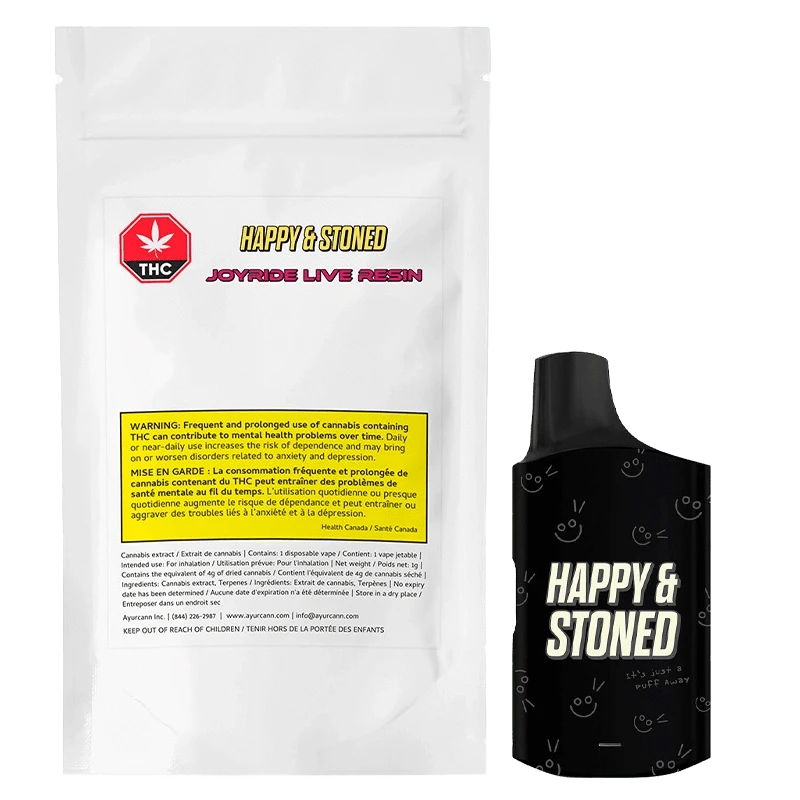 Happy and Stoned Joyride live resin disposables are extracted from fresh frozen sativa strains for a terpene filled...