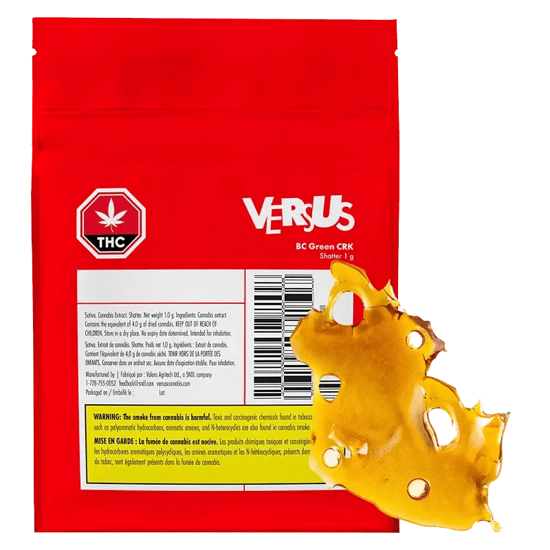Meet Versus BC Green CRK Shatter, a cult favourite sativa-dominant hybrid that awakens the senses with its enticing...