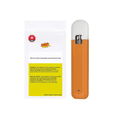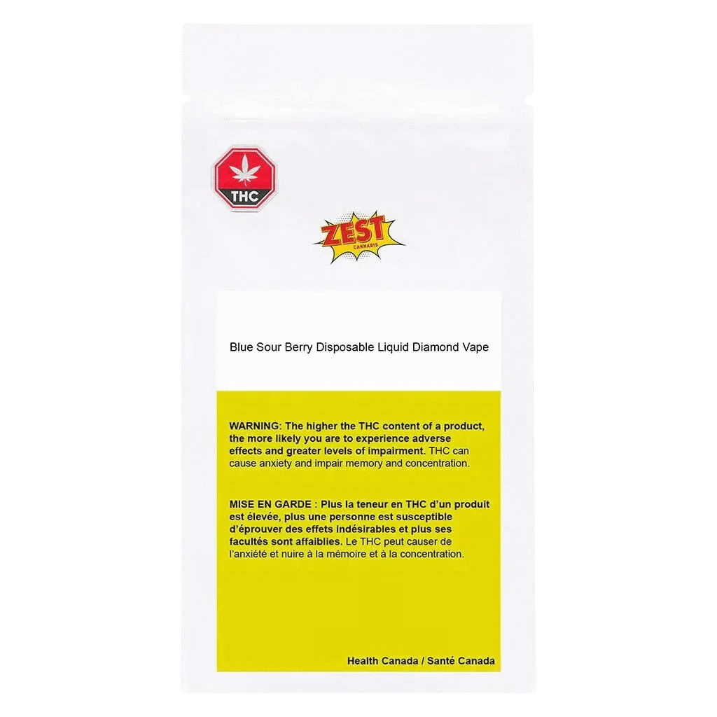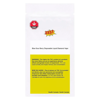 Zest Cannabis 1G Blue Sour Berry Liquid Diamond BHO vape cart. High THC, a tangy, floral vibe. Flavour...
