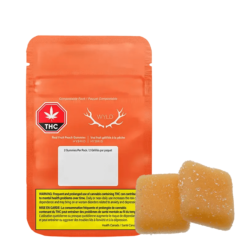 Wyld Peach Hybrid + CBD soft chews are sustainably made using real fruit, botanical terpenes and natural flavours....