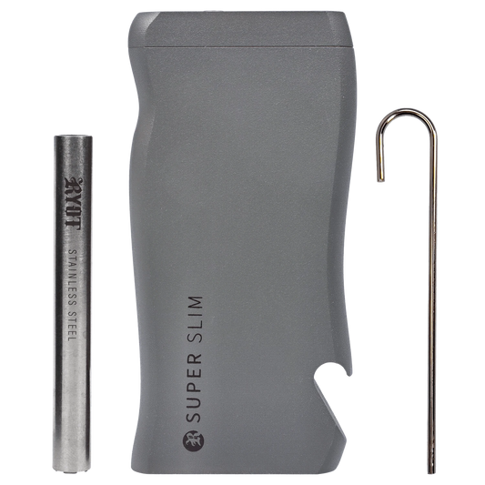 Hit the nail on the head with this hammer-style bubbler. This mainly clear design is 5 inches in length and has a cool pop of colour of the mouthpiece, creating a stylish and modern look. A deep bowl allows you to pack for a party or smaller for solo sittings. Add water to the base for an ultra-smooth sesh and regulate air flow with the left-side choke. Made from handblown borosilicate glass it's easy to keep your pipe clean using any of our glass-safe solutions. The always epic Dopezilla logo adorns the tube, and a unique Phoenix drawing is on the front. Get dope with Dopezilla.