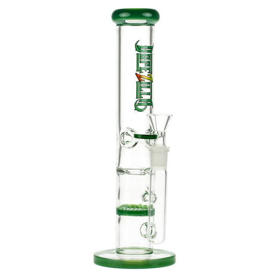 Dopezilla is dope. Slimzilla is 10 inches tall and made from handblown borosilicate glass. This straight tube is equipped with an ice pinch to keep your hit incredibly chill. Its removeable diffused downstem and 14mm glass-on-glass bowl are super easy to clean. A cool Dopezilla logo adorns the tube, and the mouthpiece and super sturdy base have a pop of colour to keep things interesting. Slimzilla comes in a collectible box, ideal for gifting.