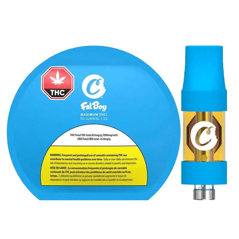 This TQ Sunrise Fat Boy 510 vape packs the maximum amount of THC (1000mg) in a cartridge. TQ...