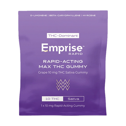 Emprise's Rapid Onset Grape 10 mg THC Sativa Gummy is a THC-dominant formulation that is active in 8-12...