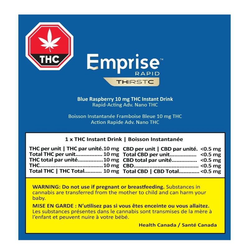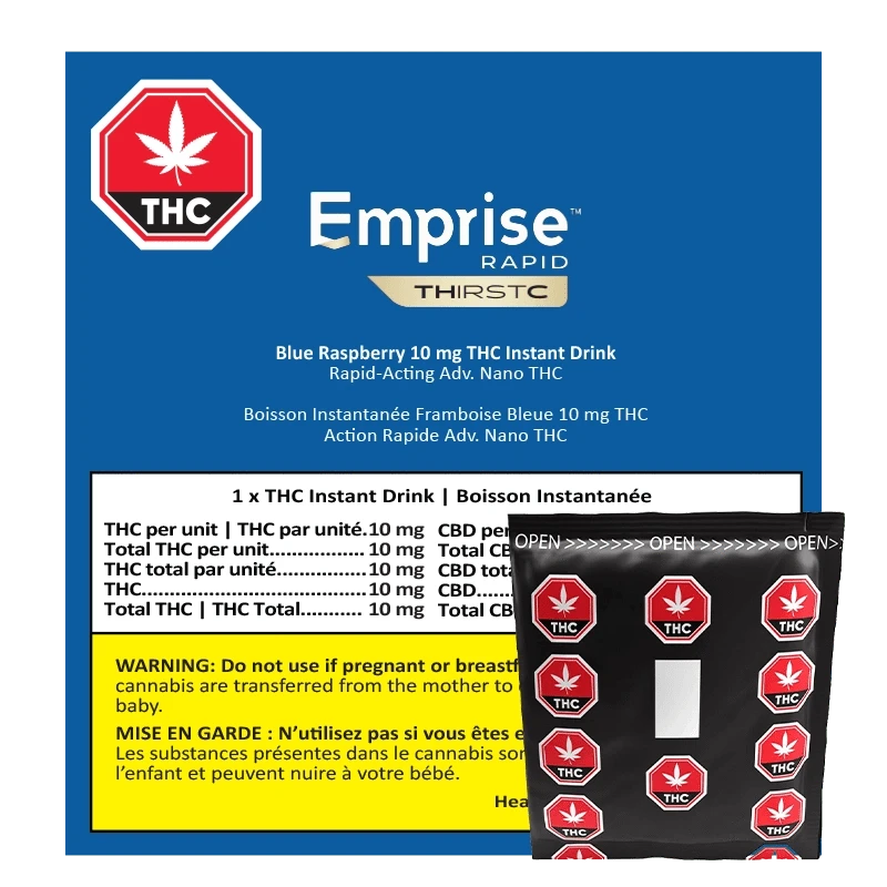 Emprise Rapid THirstC Blue Raspberry 10mg THC Instant Drink is ready when you are, add to 250ml of...
