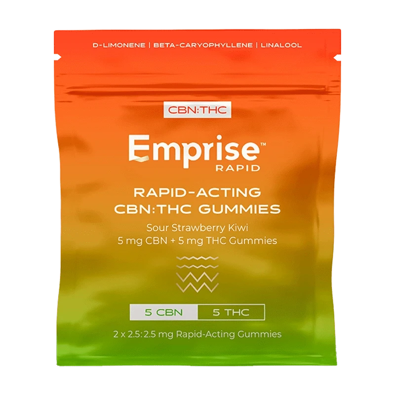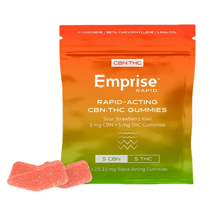 Emprise’s Sour Strawberry Kiwi soft chews contain 5 mg of CBN and 5 mg of THC using Emprise's...