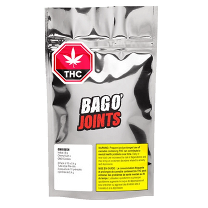 GMO Kush Bag o' Joints delivers 20 tube-style, 0.4g pre-rolls across two packs of 10, rolled with 100%...