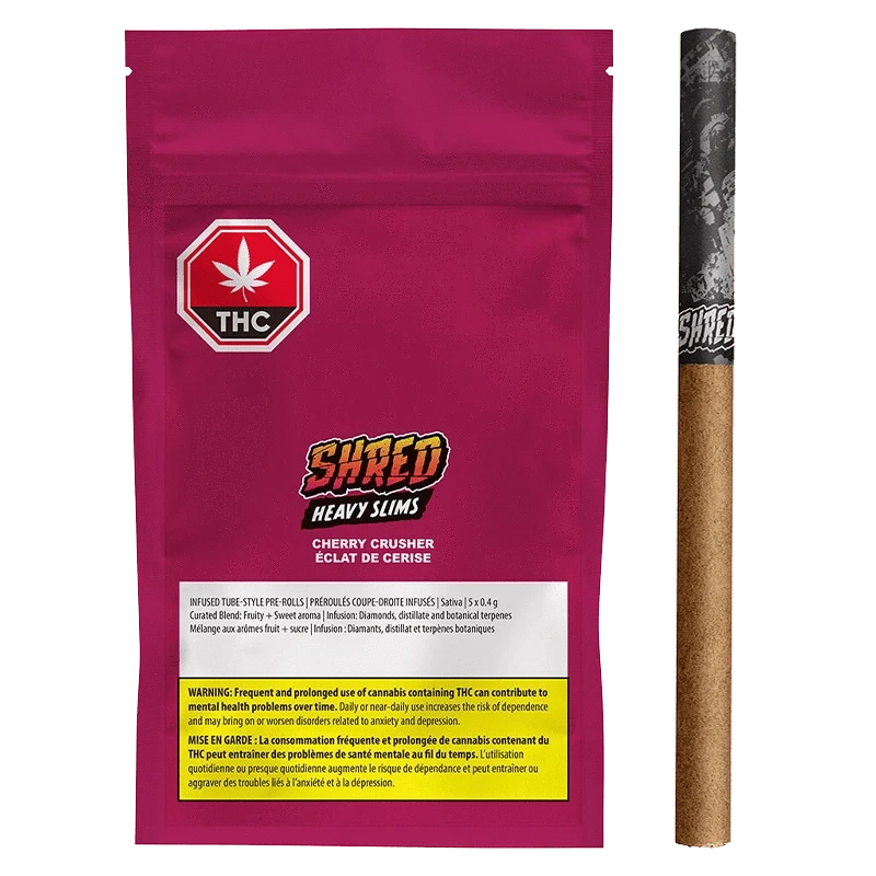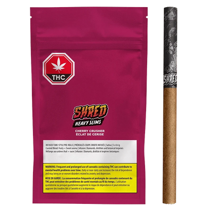 SHRED Cherry Crusher Heavy Slims are a sleek tube-style infused blunts offering a burst of super juicy cherry...