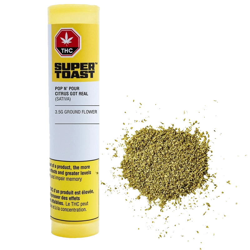 3.5g of freshly ground citrussy sativa smelling like freshly squeezed OJ. Fluffy, sticky goodness packed in a pop...