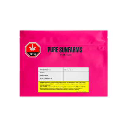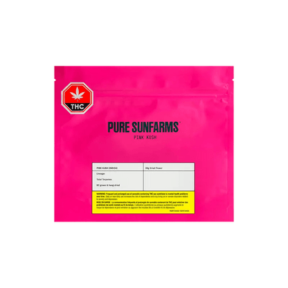 Pure Sunfarms' cut of Pink Kush from BC's Vancouver Island is a coastal relative of the legendary OG Kush. This special strain is beloved across Canada for its strong aromas, colourful flowers and high THC potential. Beneath a thick coating of trichomes, the dense and round buds feature forest green leaves, often with a purple hue, mixed with dark amber pistils. Grown in a high-tech greenhouse in the Fraser Valley, each bud is carefully trimmed and hand-groomed, dried and cured to precise standards. Pink Kush showcases gassy aromas of white pepper, orange, butterscotch, coffee, earth and grapefruit, the result of a rich combination of terpenes that includes caryophyllene, myrcene, humulene, bisabolol, and limonene.