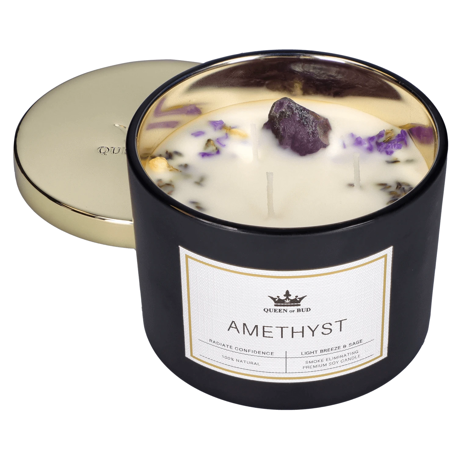 Amethyst provides a calming presence, giving you inner strength and newfound confidence. This smoke-eliminating candle smells like light...