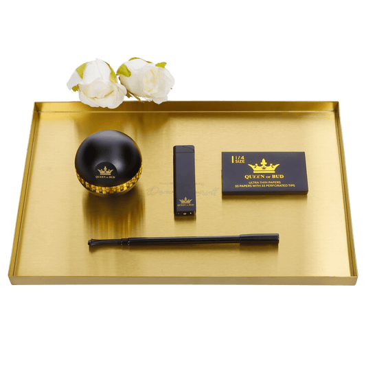 Zippo and Queen of Bud have come together to create a collection of timeless and elegant lighters. It pairs Zippo's iconic, reliable and refillable lighter with the effortless and ethereal design Queen of Bud is known for to produce an alluring experience. Made in the USA with all metal construction, the lighter is windproof for a powerful and luxurious lighter. The Golden Vertical Flame design is gold with stripes and etched with Queen of Bud's quintessential crown logo and name.