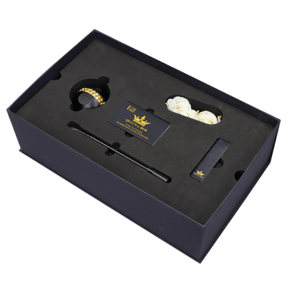 The Queen of Bud Rolling kit is the epitome of classic luxury. All black with a sophisticated splash of gold, this unique and refined kit is transcendent. This stunning box holds all of your rolling essentials including a premier grinder, stylish lighter, chic fumette (a delightful holder for your pre-roll), unbleached rolling papers with filters and an elegant rolling tray engraved with “Discover Cannabis. Discover Yourself.” To top off this premium experience, romantic white roses are also inside making this a remarkable gift for yourself or a loved one.