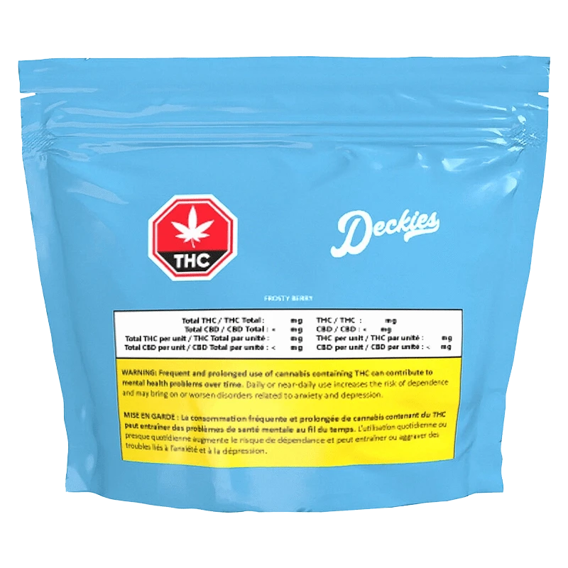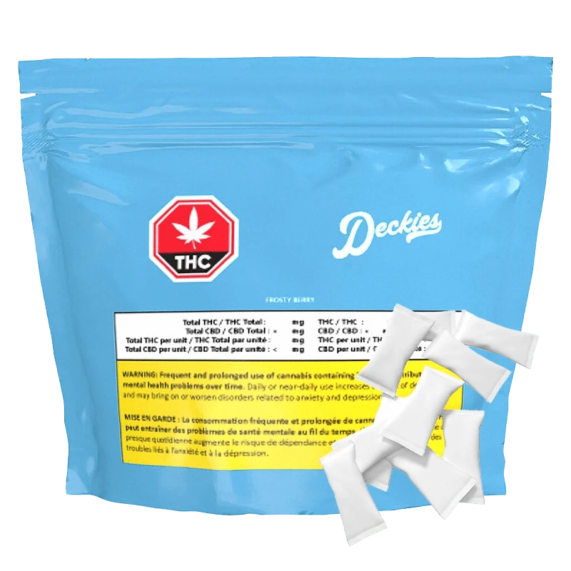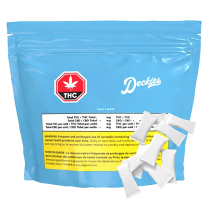 THC infused sublingual "pillow" pouches to be administered under the lip. Frosty Berry flavour. These pouches are small,...