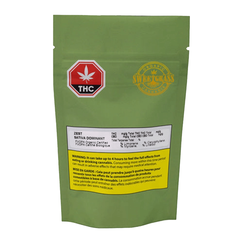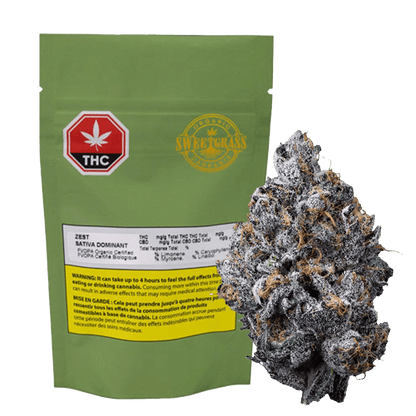 Zest is an eye-popping sativa-dominant cultivar resulting from a cross between Cali Orange Skunk and Alcatraz OG. Its flower structure results in picture-perfect conical buds with rich purple hues caked with plenty of those gooey glands we all know and love. Bag appeal alone is enough to dive in but there’s plenty more this beauty has going for it. Comprised primarily of Limonene, Linalool, and Caryophyllene, there’s a volatile tangy orange aroma that leaps off the top with undertones of ginger, spice, and fresh woodland pine nestled underneath. Its intense and stimulating flavour packs a hefty zing of sour citrus/lime with a touch of skunky, rubber funk. Imagine a sweet pine breeze on the inhale and incense-like spice on the exhale. Certified organic and grown in the Sweetgrass living soil beds, Zest soaks up all the subterranean goodness through its roots and puts it towards the fullest expression of the plant. Zest for life? Yep!