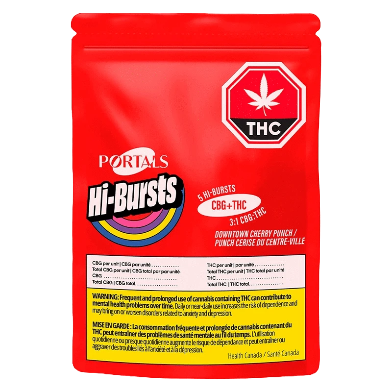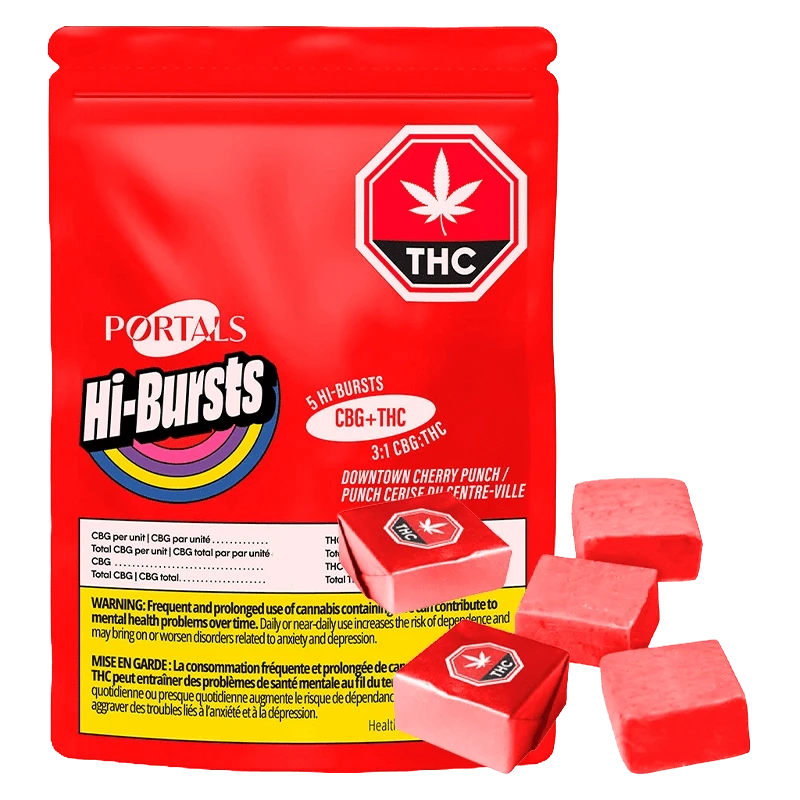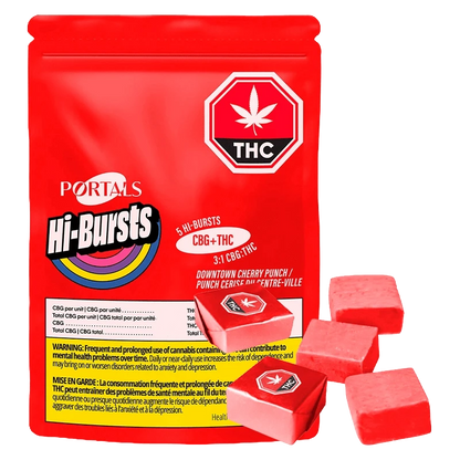 Portals Hi-Bursts are all about the effects! Each flavor contains a custom combination of 10mg of THC and up to 40mg of carefully curated minor cannabinoids designed with a specfic experience in mind so you can literally 'chews' your own adventure! And all Hi-Bursts are made from only the most premium confectionery ingredients with organic tapioca syrup and all-natural, real fruit flavours and colours, and are vegan friendly & gluten free