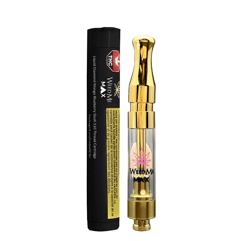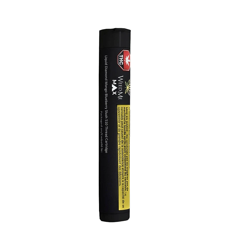 Liquid Diamond Mango Blueberry Slush is a hybrid 510 thread standard vape cartridge. This high potency liquid diamond vape offering from Weed Me Max brings a fruity mango flavour, followed by a lip smacking wave of blueberry.