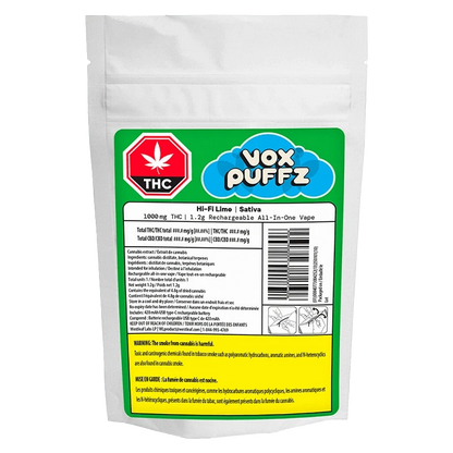 VoxPuffz 1.2g All-in-Ones are the 'good things in the small package' everyone talks about. Triple distilled disty is boosted with botanical terpenes for the purest, smoothest, most flavourful experience possible. All this, wrapped up in a 420mAh USB-C rechargeable battery, giving you 180 puffs on a full charge. With 1000mg of THC these vapes don't take low for an answer. Lifting you up while raising the bar - Live Vivid with VoxPuffz.
